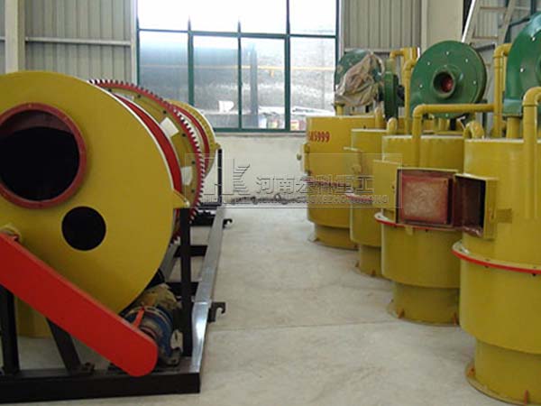 雞屎烘干機(jī)現(xiàn)場物料經(jīng)鏟車送到料倉再送到定量輸送的螺旋進(jìn)料口進(jìn)入烘干機(jī)內(nèi),烘干機(jī)筒體內(nèi)附有揚(yáng)料板,中間有攪拌打散系統(tǒng),筒體轉(zhuǎn)速和攪拌軸的轉(zhuǎn)速均可快慢調(diào)節(jié),從而可使物料顆粒均勻,吸收充分熱量烘干速度快。烘干后的物料經(jīng)皮帶輸送機(jī)運(yùn)至料場,燃燒部分由煤經(jīng)煤氣發(fā)生爐轉(zhuǎn)化成煤氣進(jìn)行燃燒,進(jìn)一步提高燃料利用率,減少了因煤直接燃燒生成大量硫化物、粉塵造成的污染,烘干過程中的煙氣經(jīng)旋風(fēng)除塵器收塵進(jìn)入水池吸收處理。