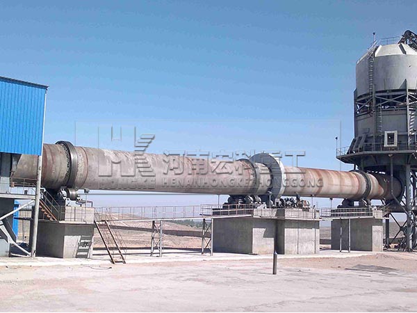 工作過程中,生硅藻土從窯尾筒體高端的下料管喂入窯筒體內,由于窯筒體的傾斜和緩緩地回轉,使硅藻土產生一個即沿著圓周方向翻滾,又沿著軸向從高溫向低端移動的復合運動,硅藻土在窯內通過分解,燒成等工藝過程,在與硅藻土交換過程中形成的熱空氣,有窯進料端進入窯系統,最后由煙囪排入大氣。